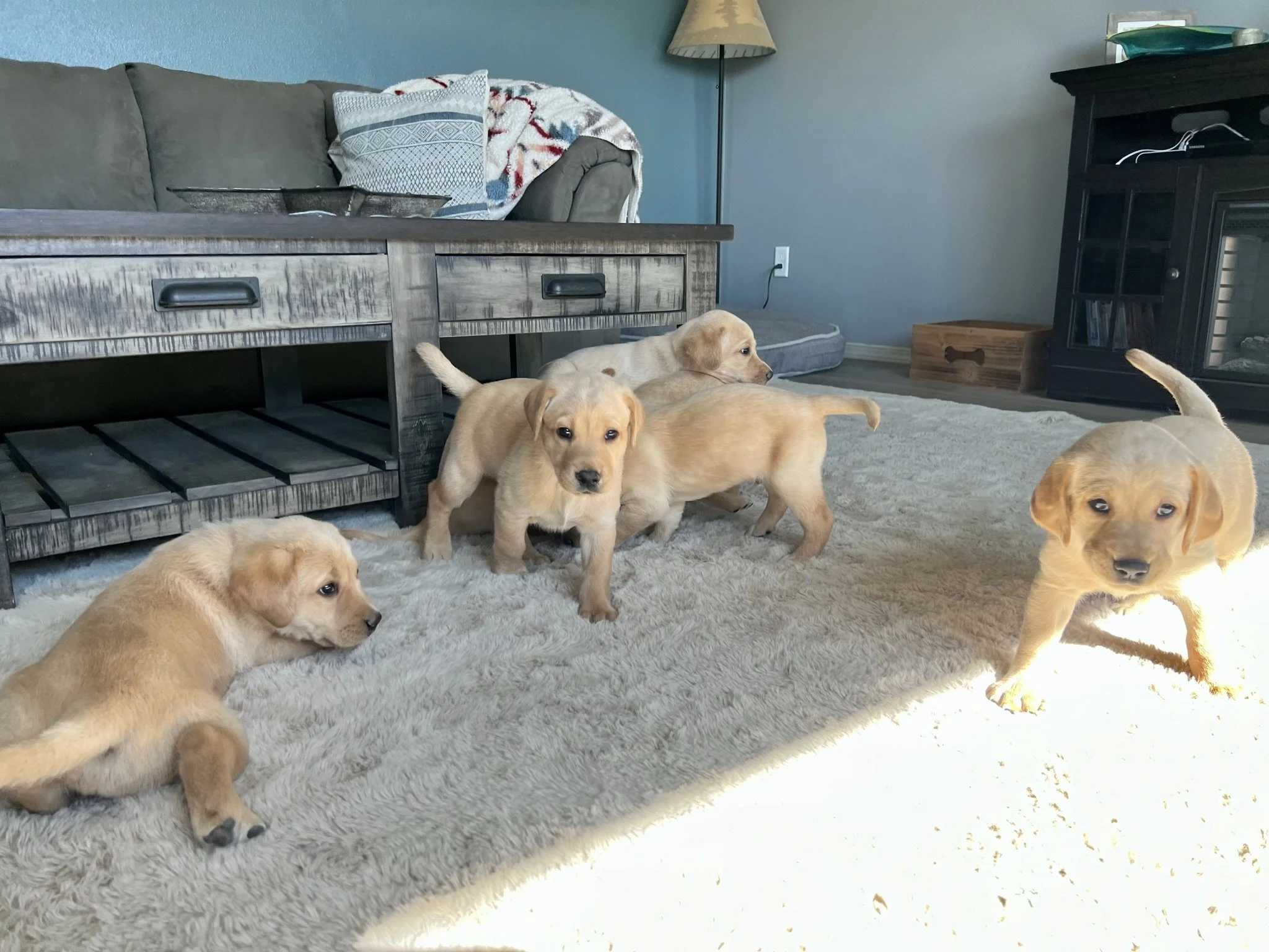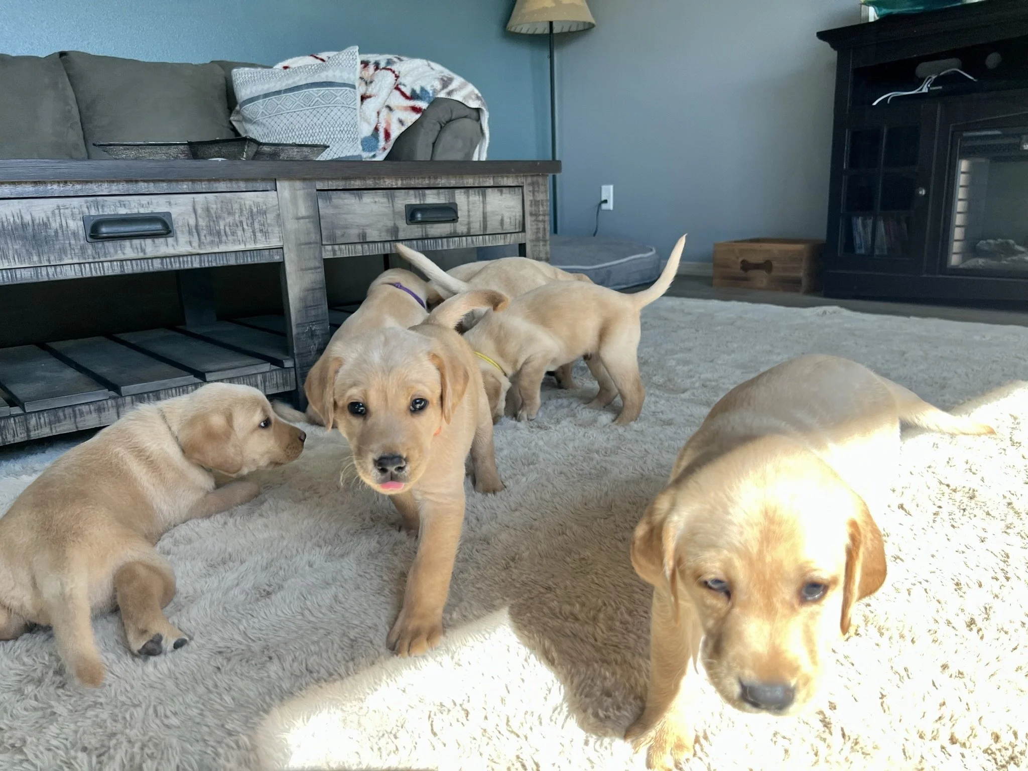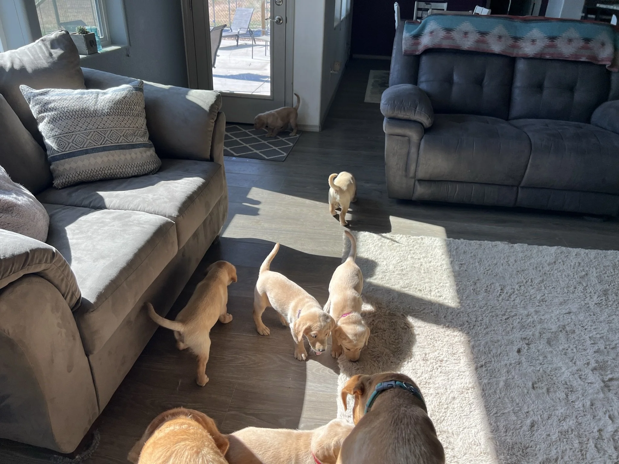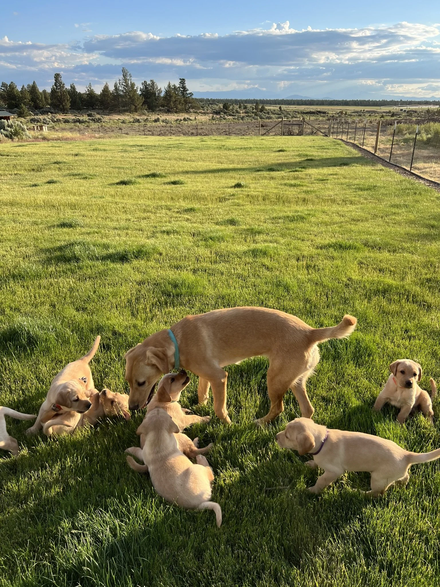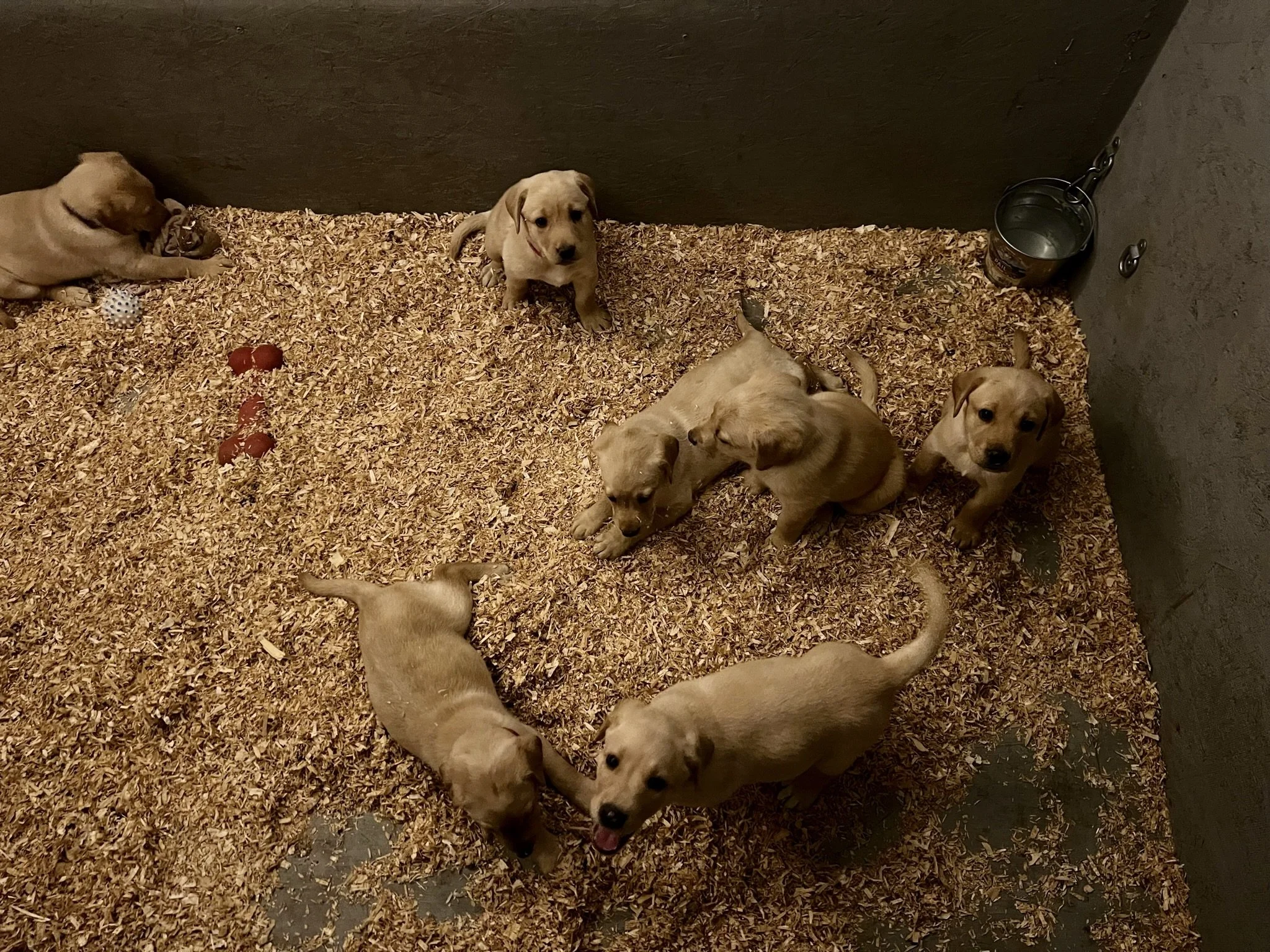 Pups are 6 weeks old! This week they got their 3rd dose of dewormer, played with toys and interacted with the cat, nightly ventures around the property while supervised of course, learned how to walk on different flooring surfaces inside, met some new people, and loved these sunny days! Still have pups available! 🐶💕