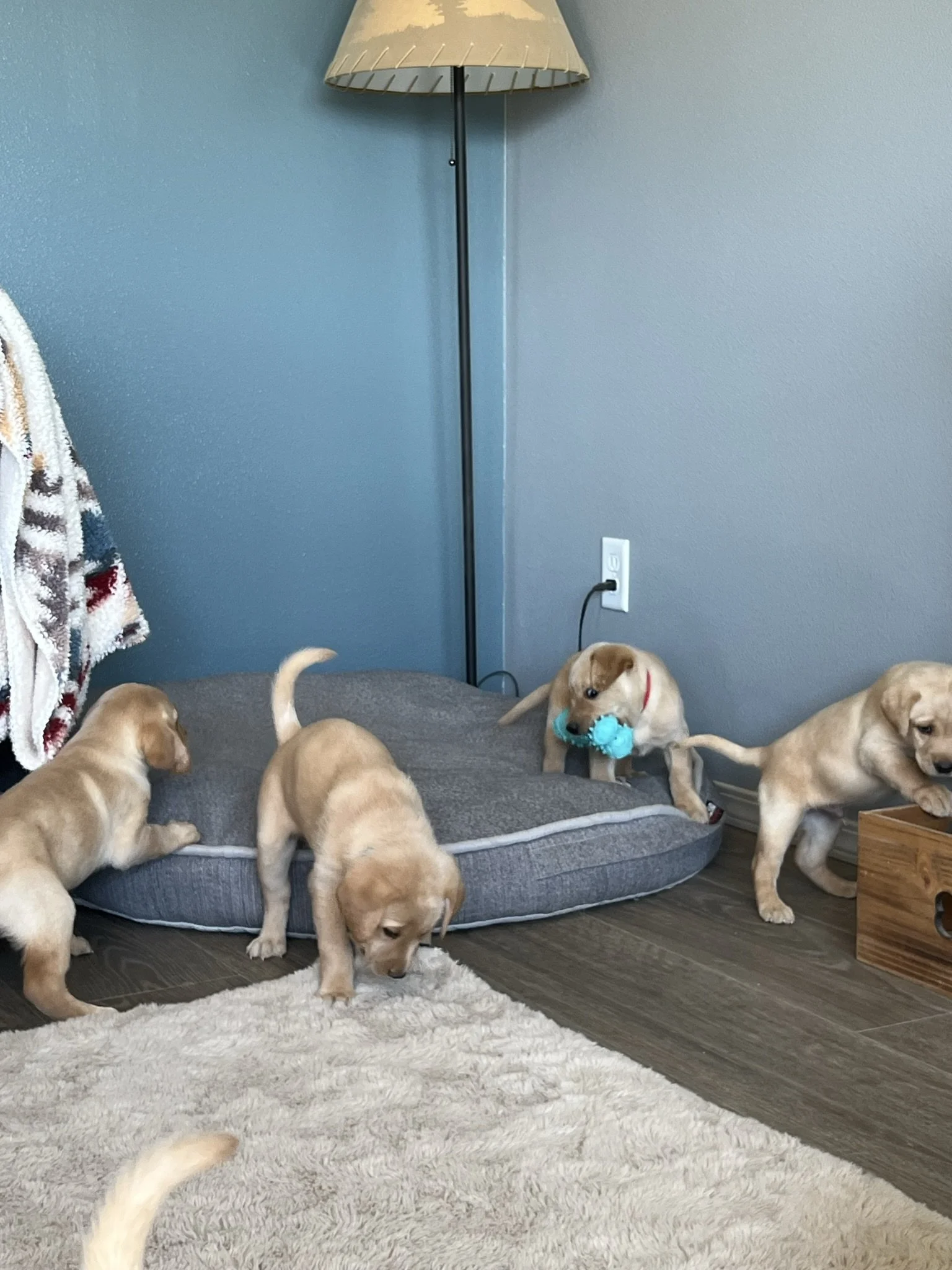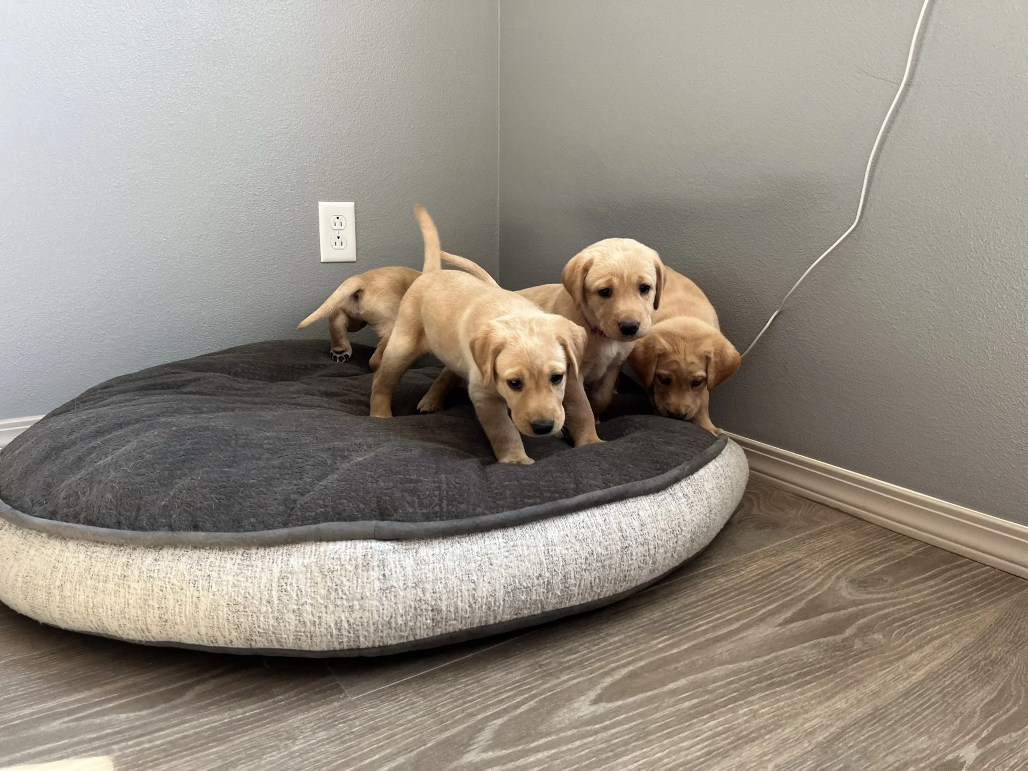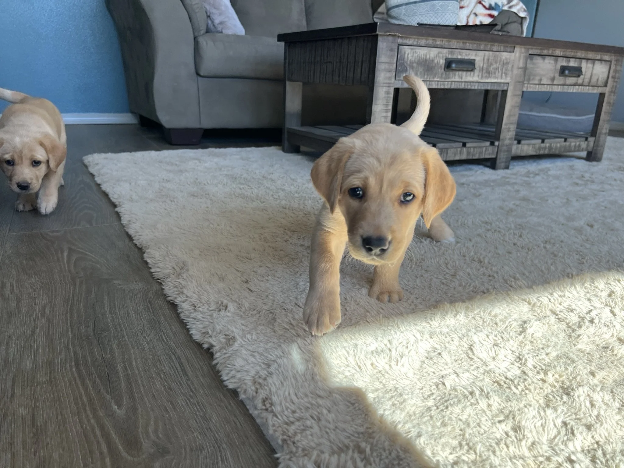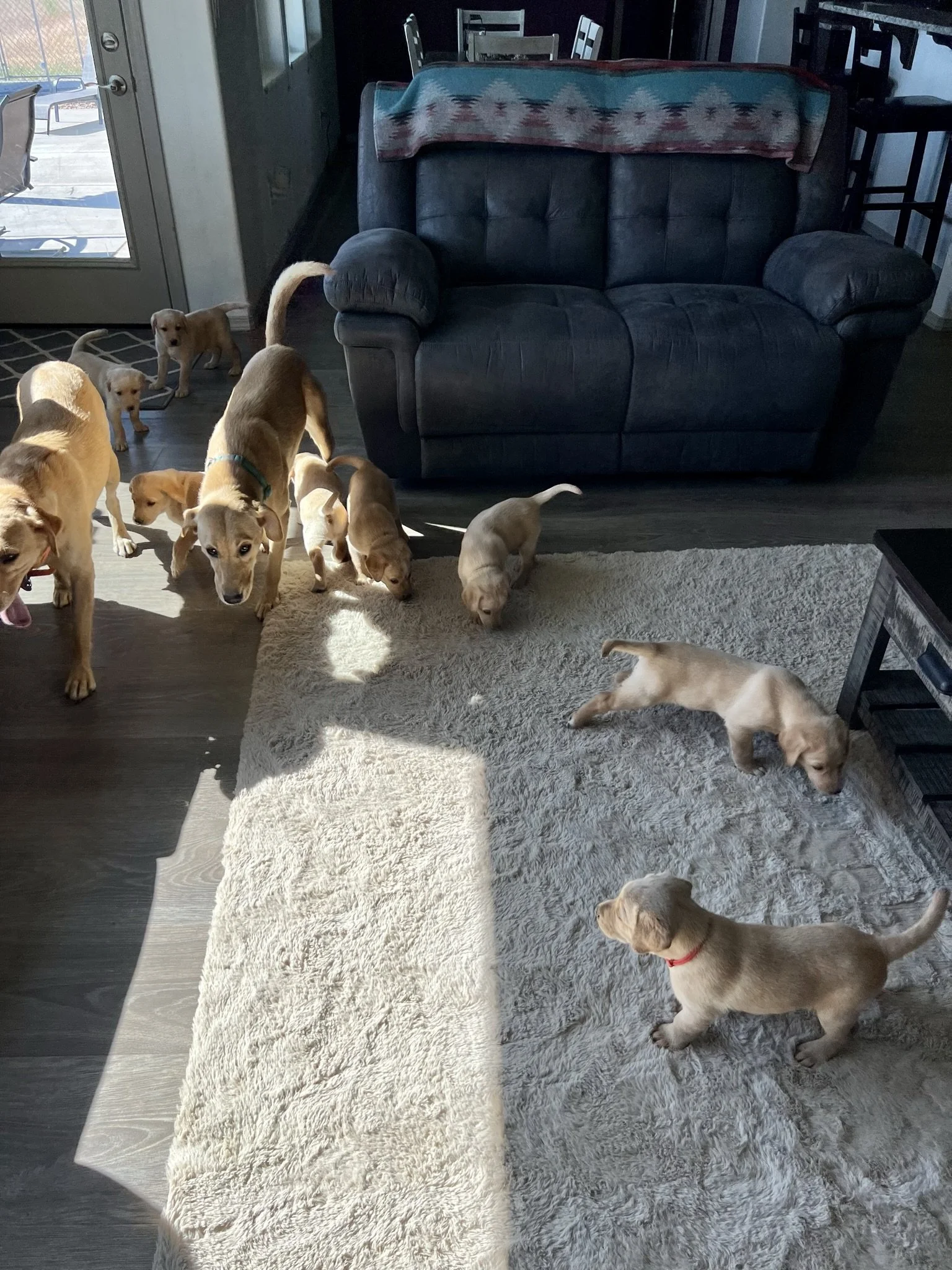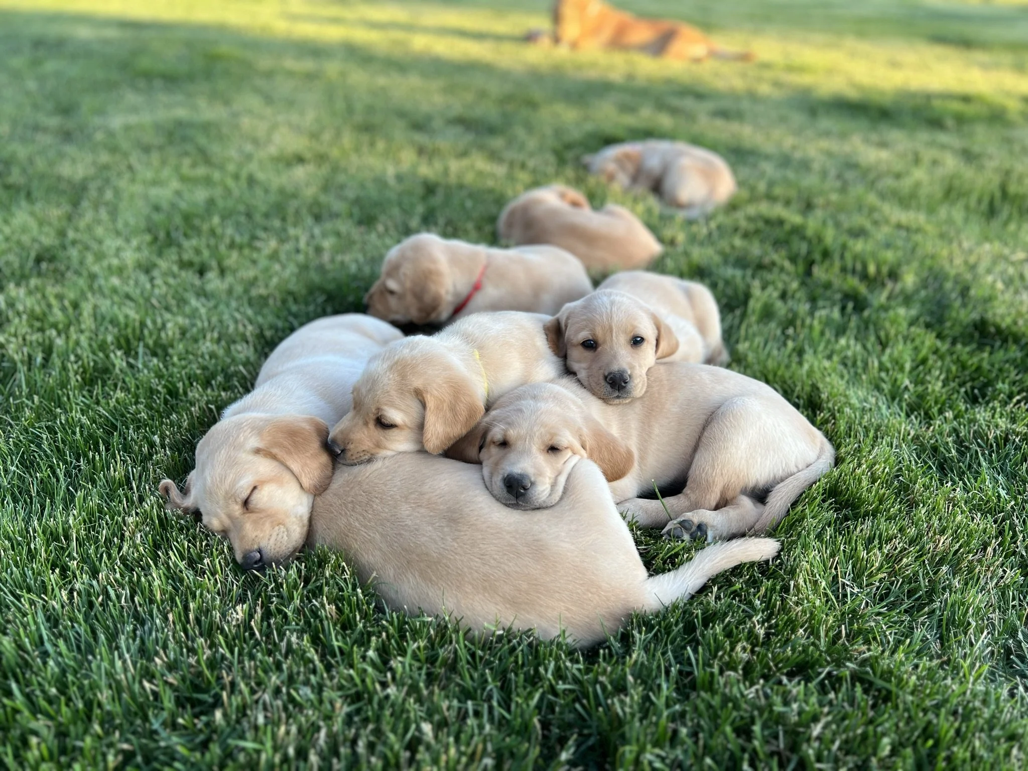 Pups are 6 weeks old! This week they got their 3rd dose of dewormer, played with toys and interacted with the cat, nightly ventures around the property while supervised of course, learned how to walk on different flooring surfaces inside, met some new people, and loved these sunny days! Still have pups available! 🐶💕