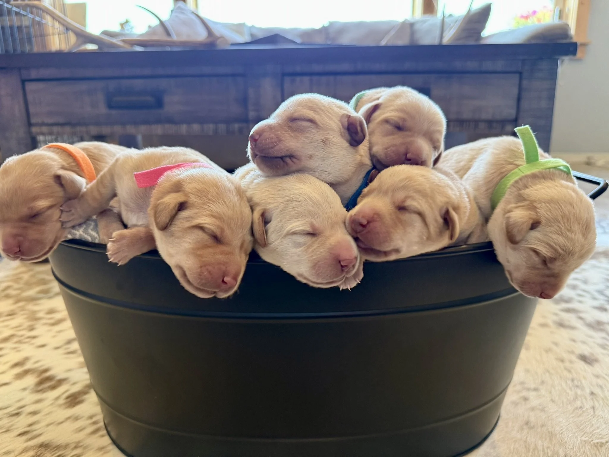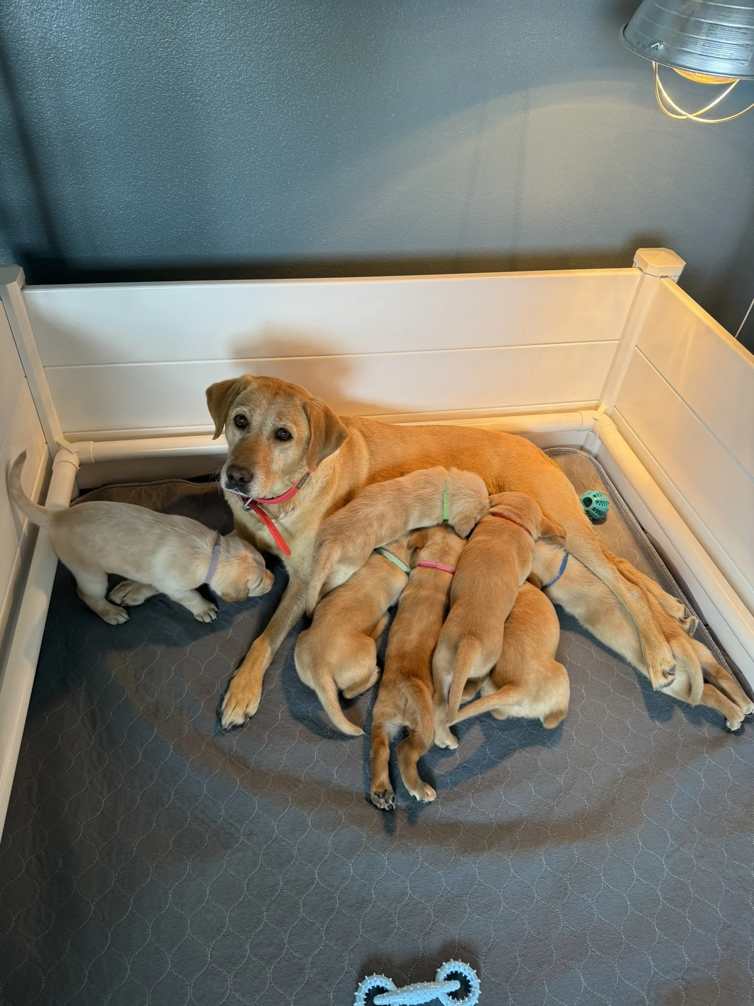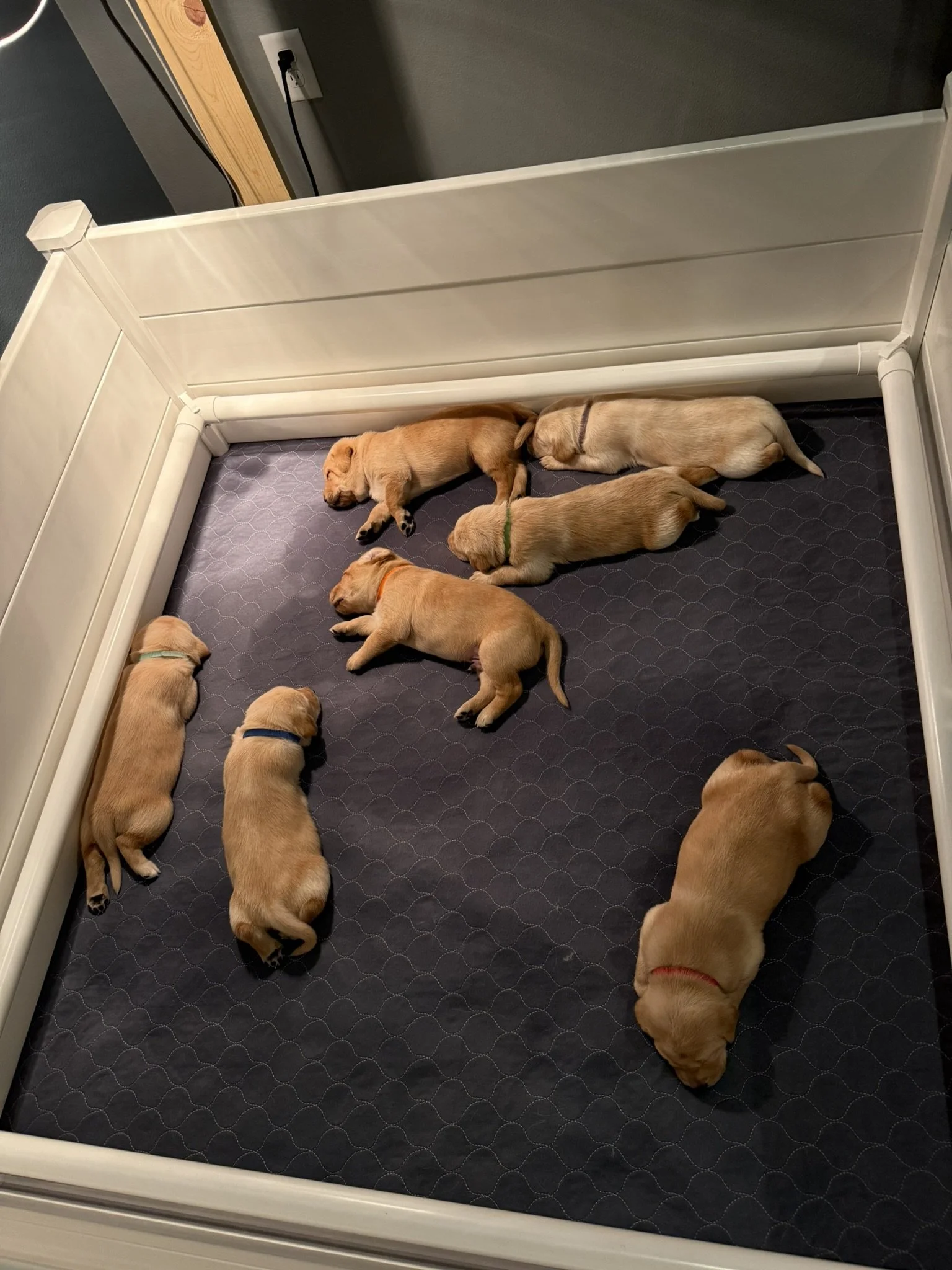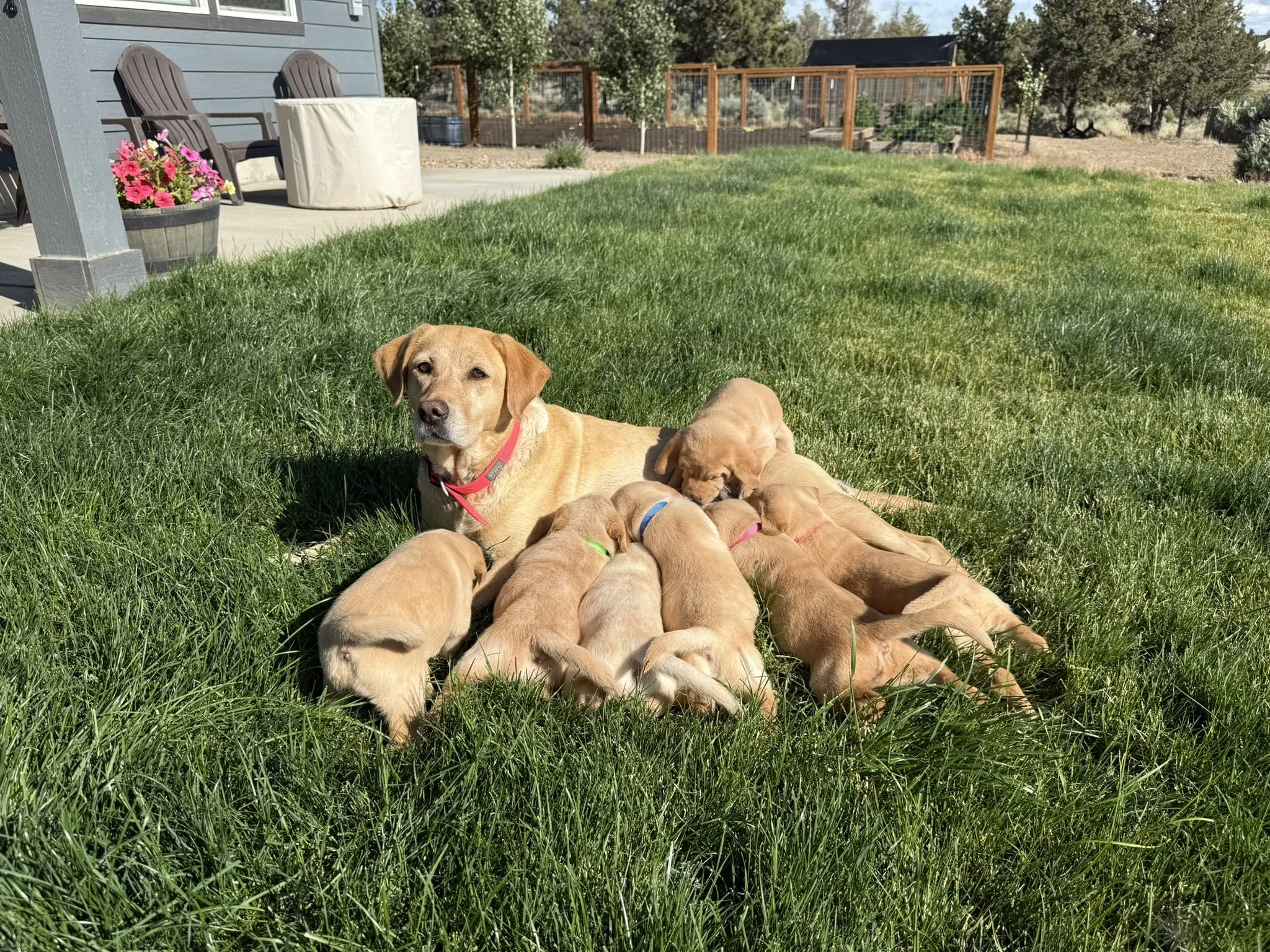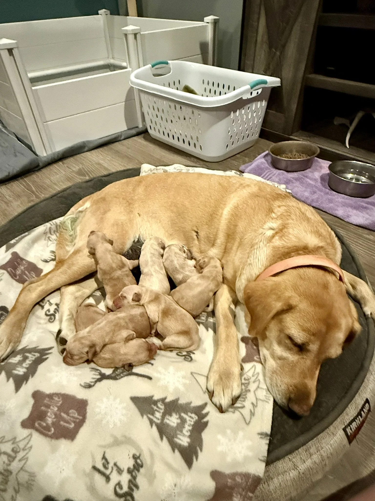 Eva’s third and final litter could not have been more perfect! This mating was a repeat with Lugar of Wind River Labs. All 7 pups were spoken for before they were even born and went to the most absolutely perfect forever homes!