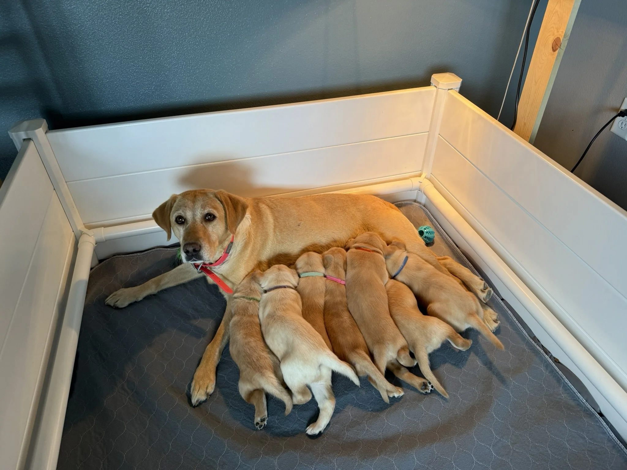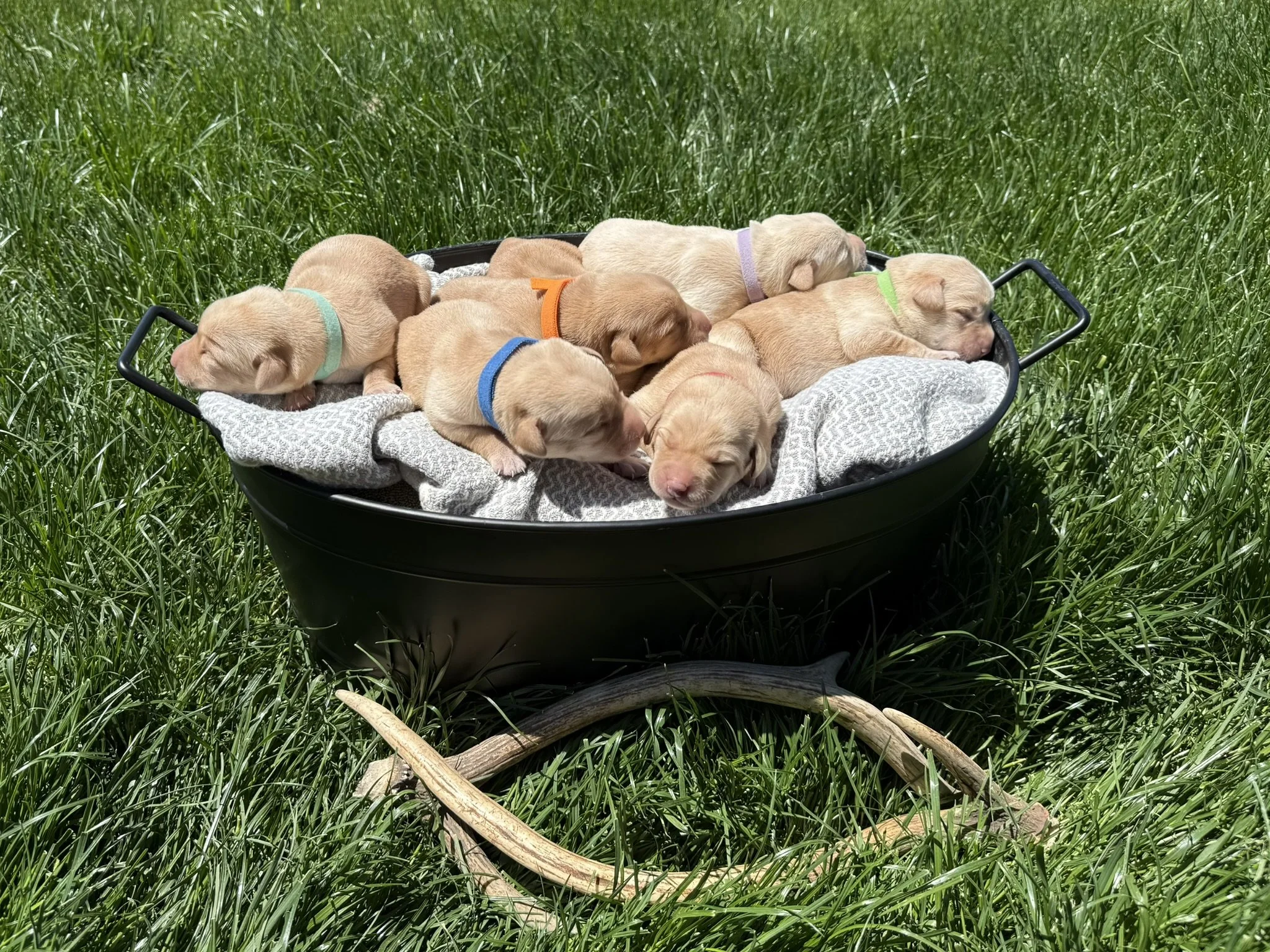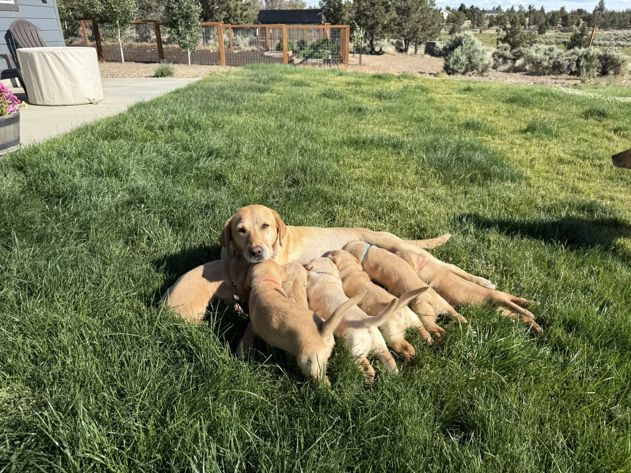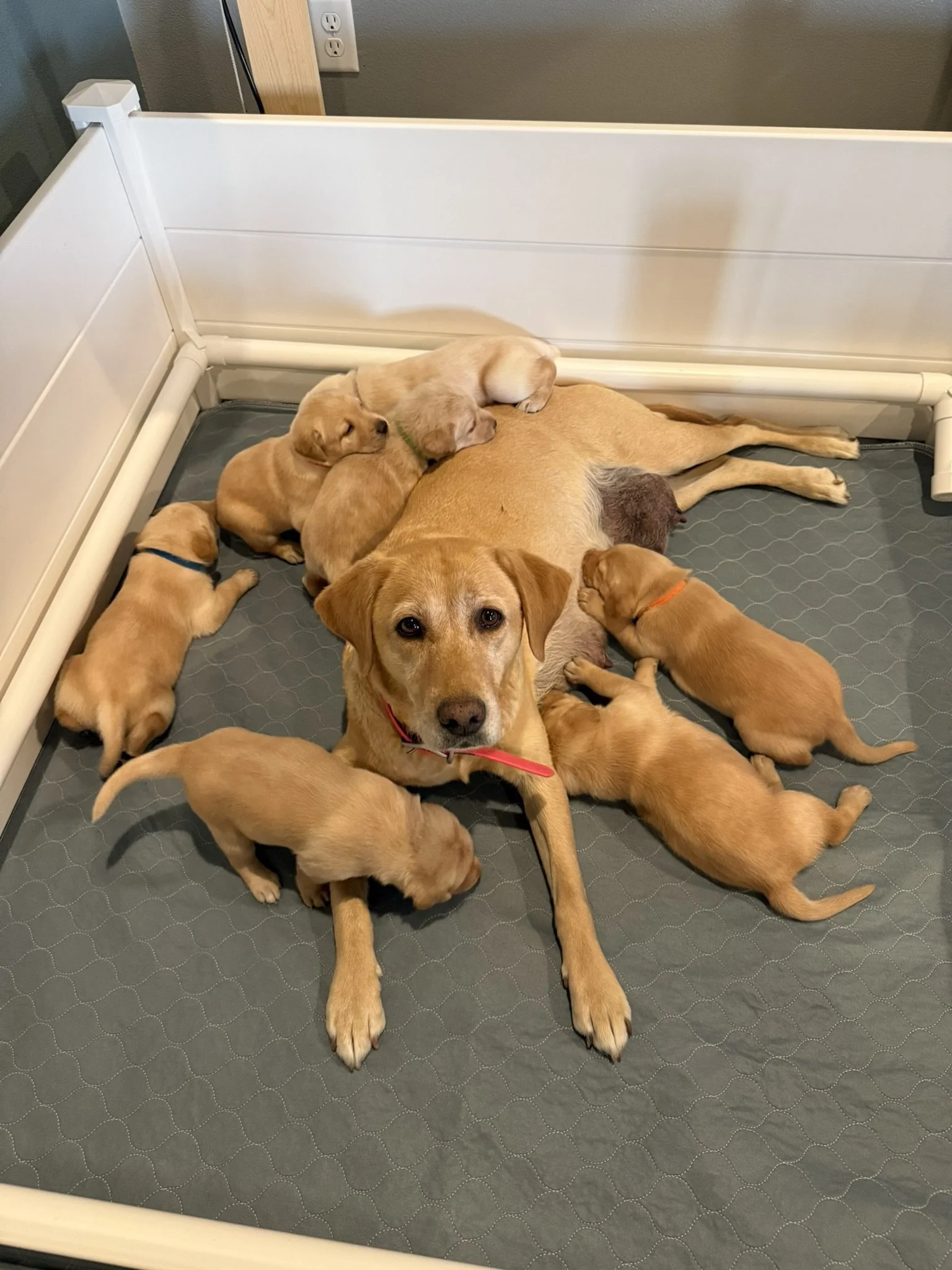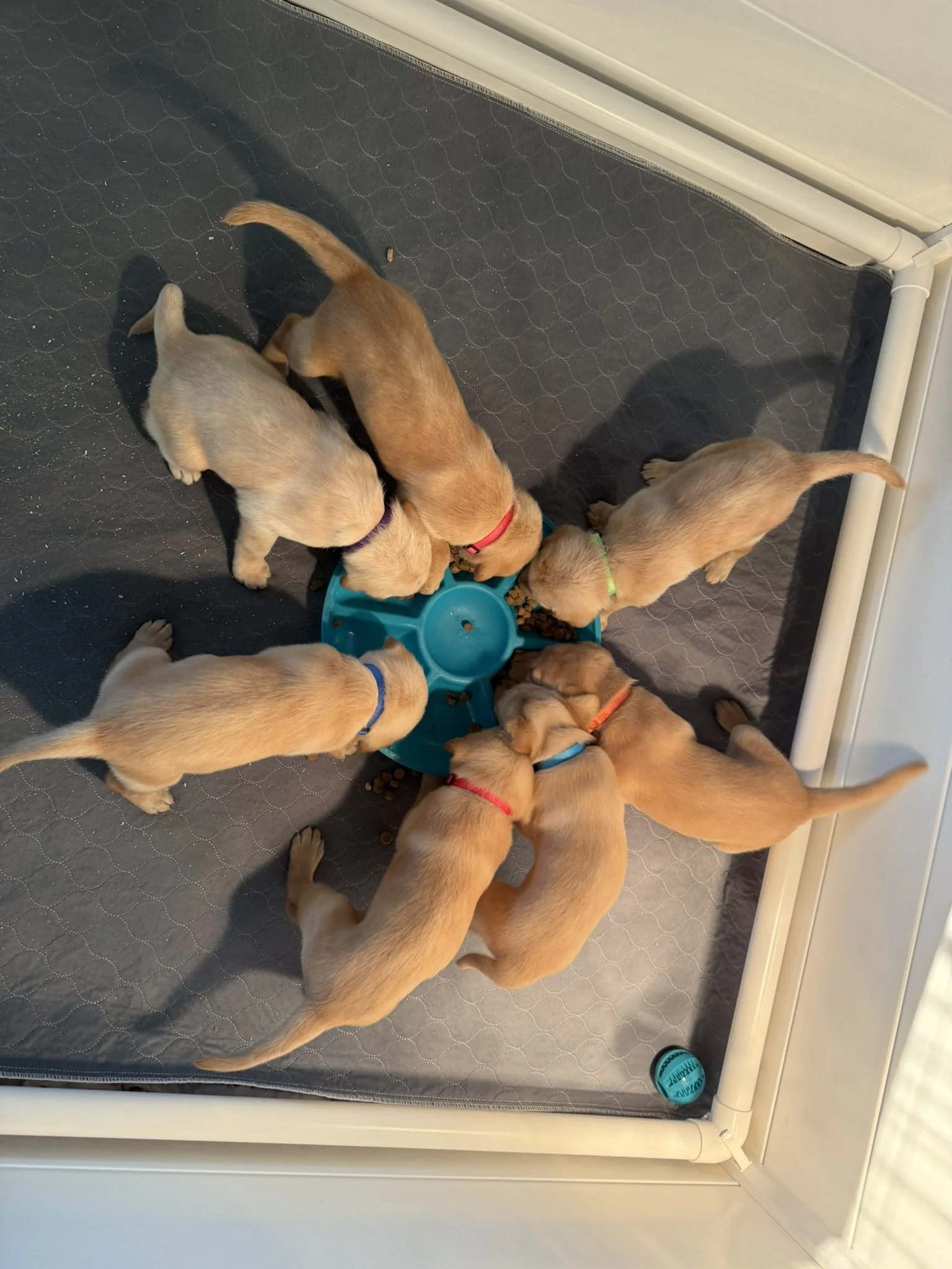 Eva’s third and final litter could not have been more perfect! This mating was a repeat with Lugar of Wind River Labs. All 7 pups were spoken for before they were even born and went to the most absolutely perfect forever homes!