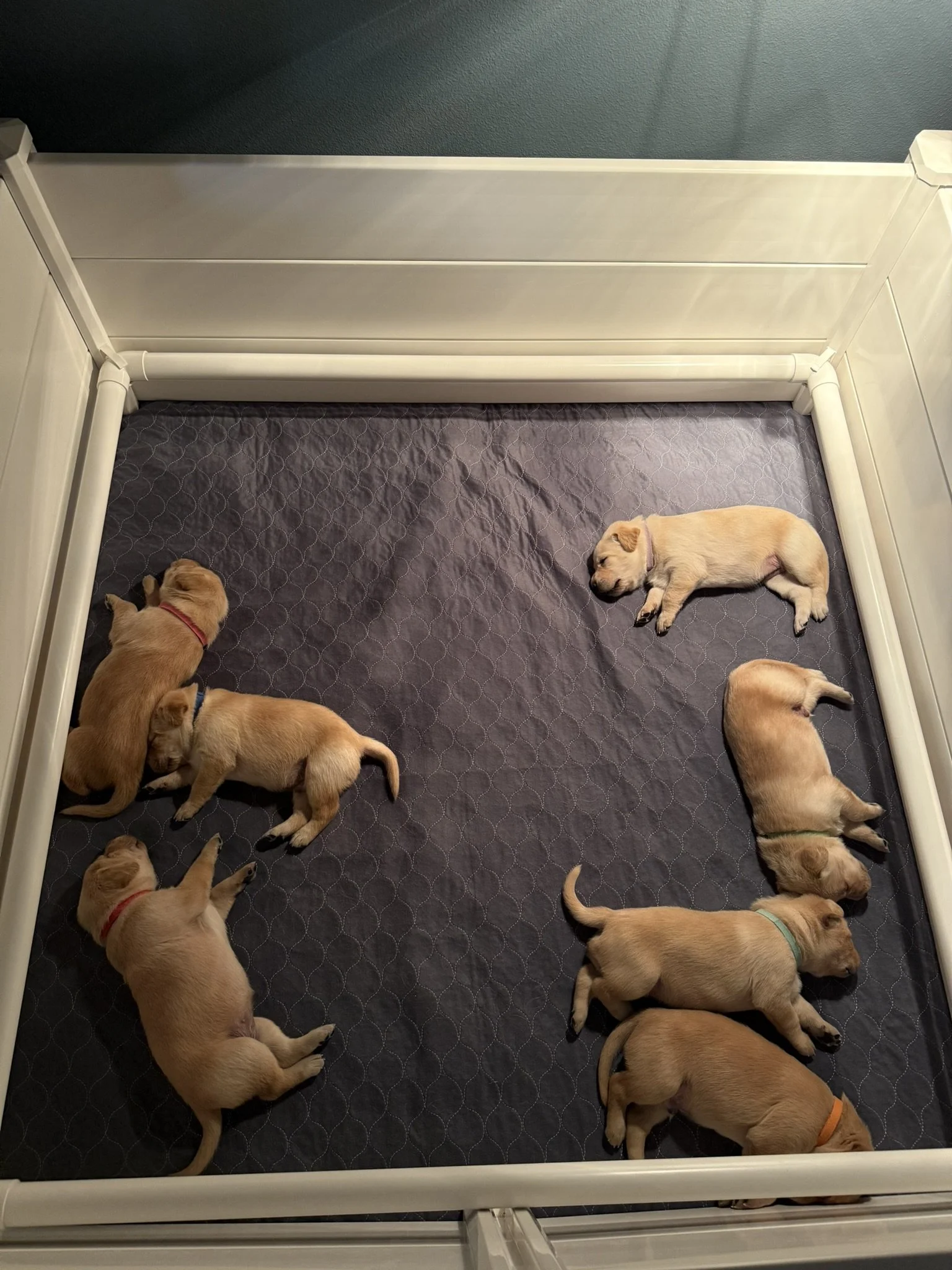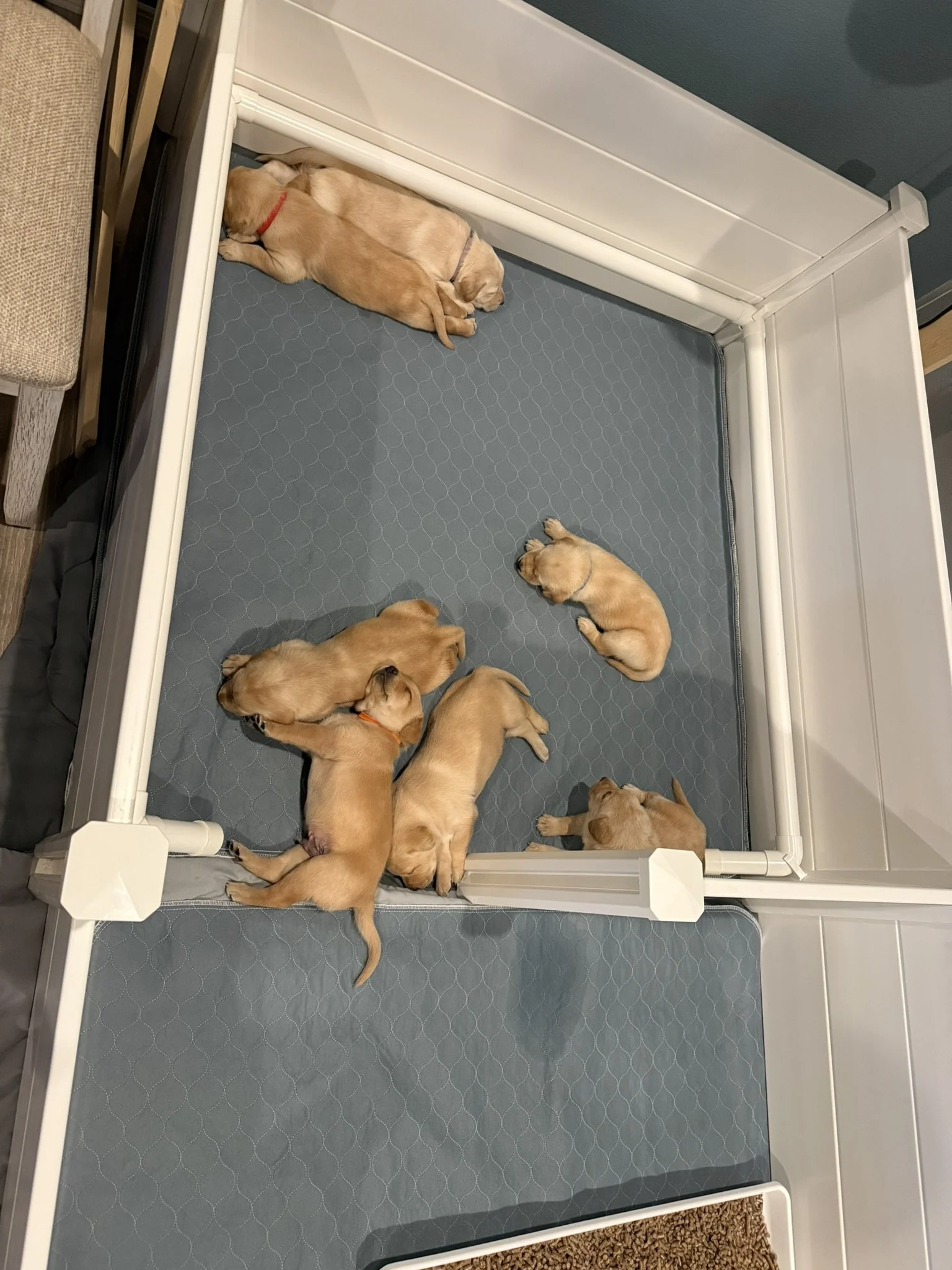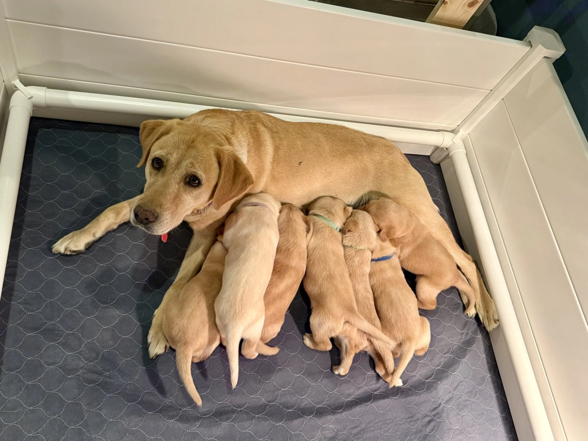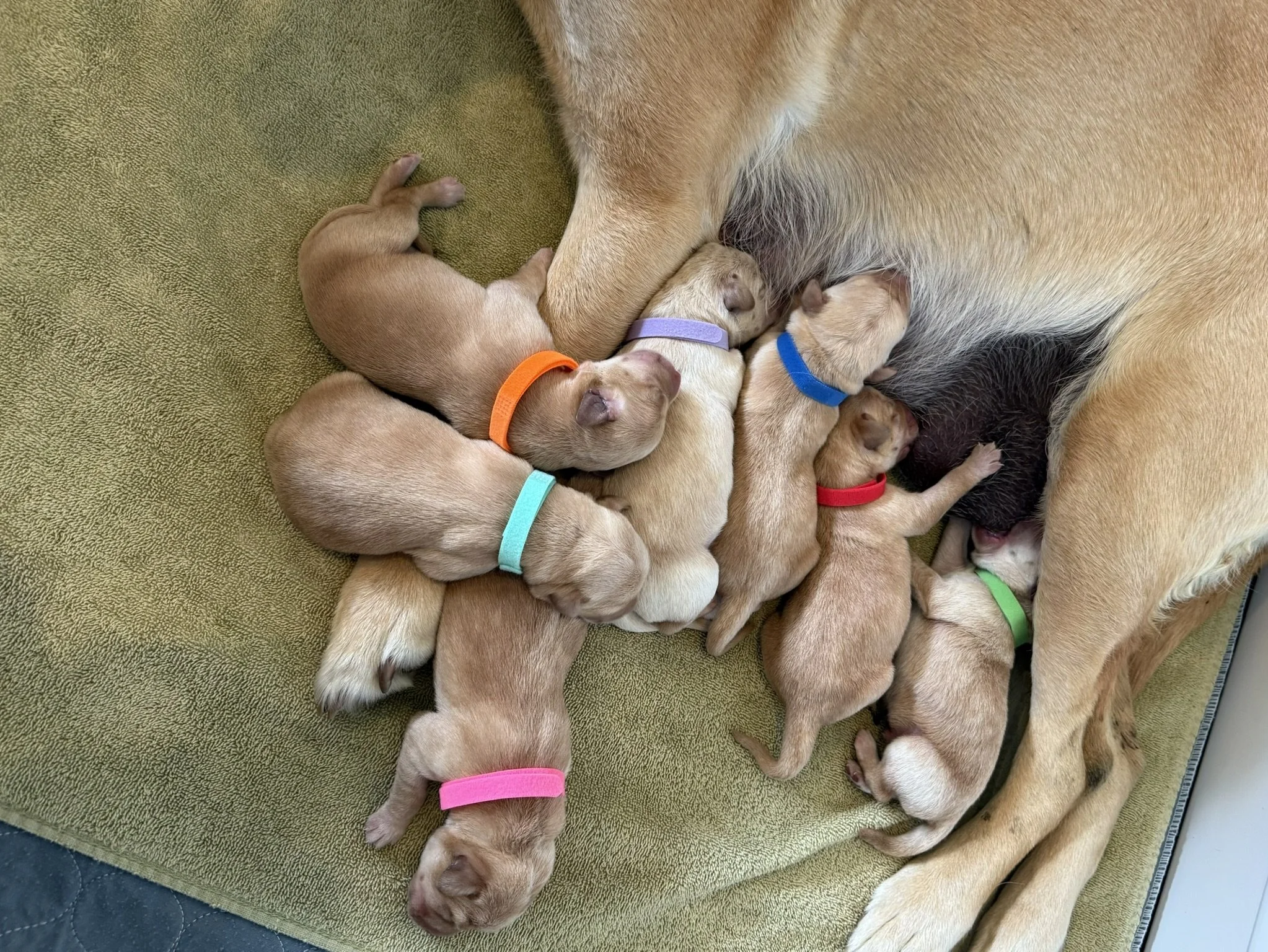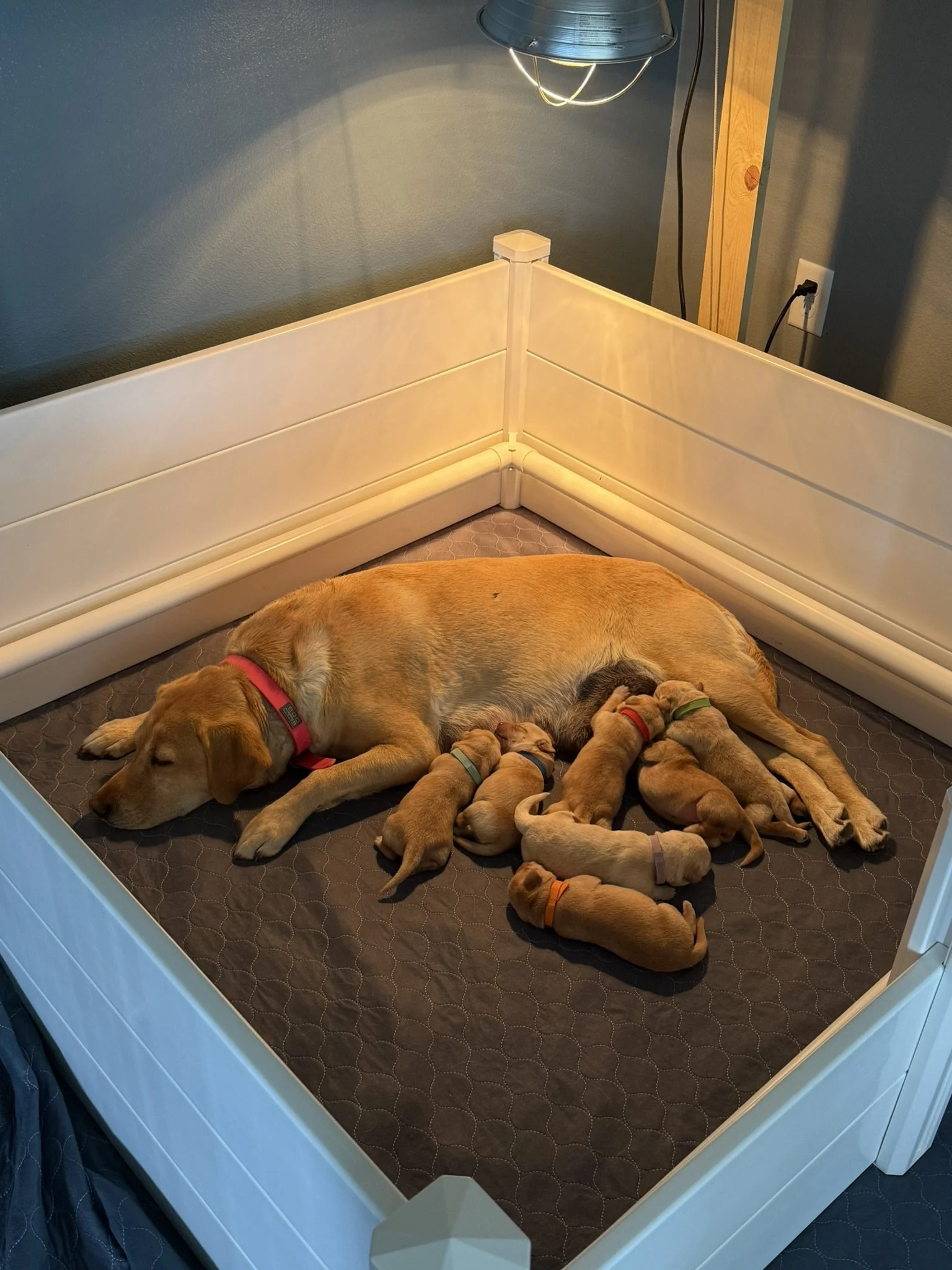 Eva’s third and final litter could not have been more perfect! This mating was a repeat with Lugar of Wind River Labs. All 7 pups were spoken for before they were even born and went to the most absolutely perfect forever homes!