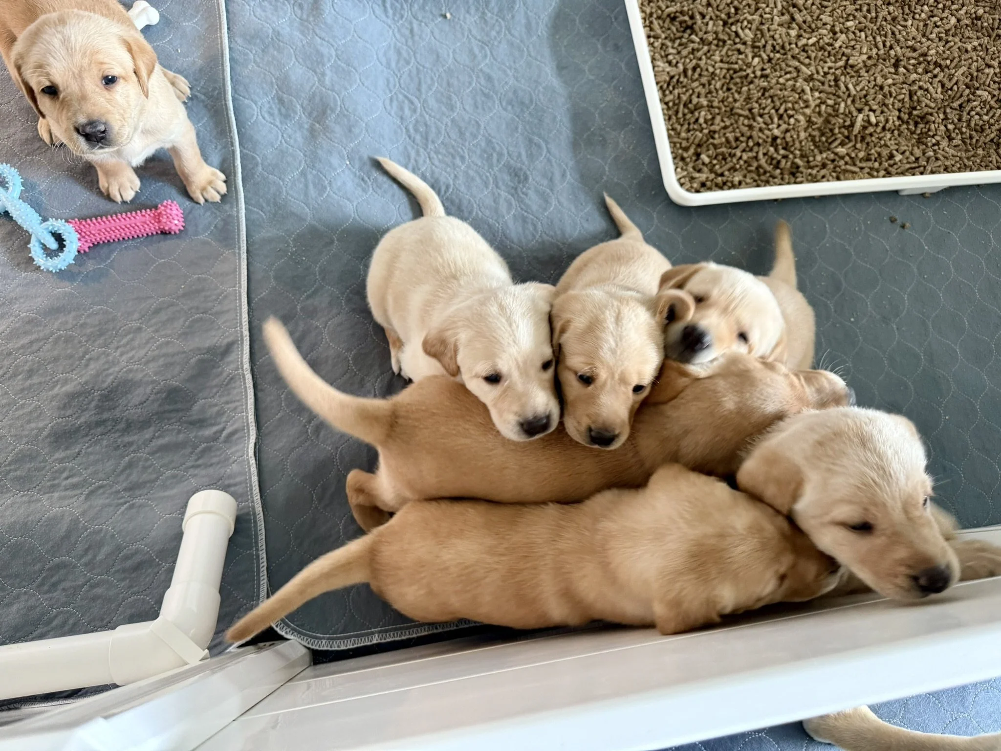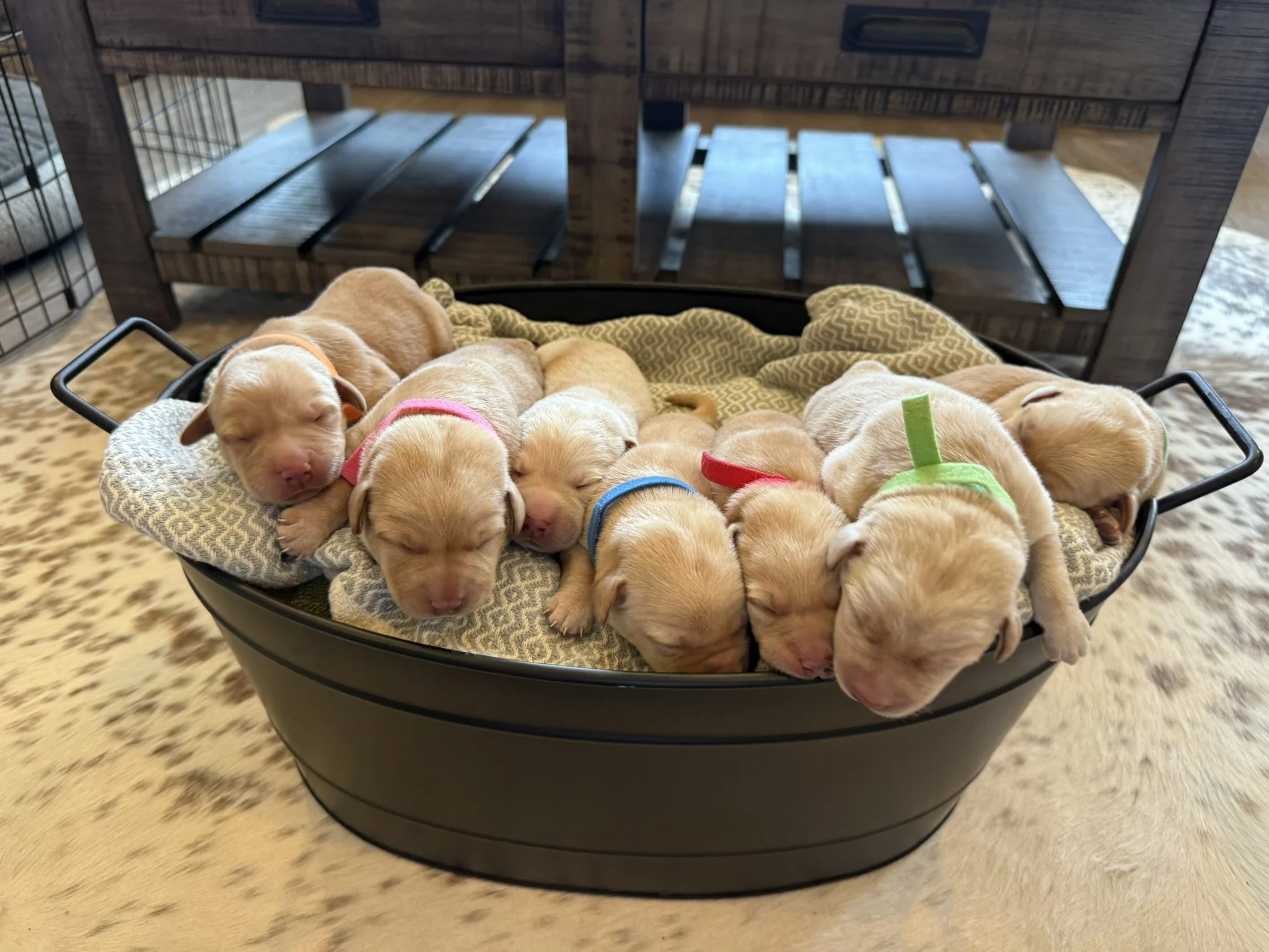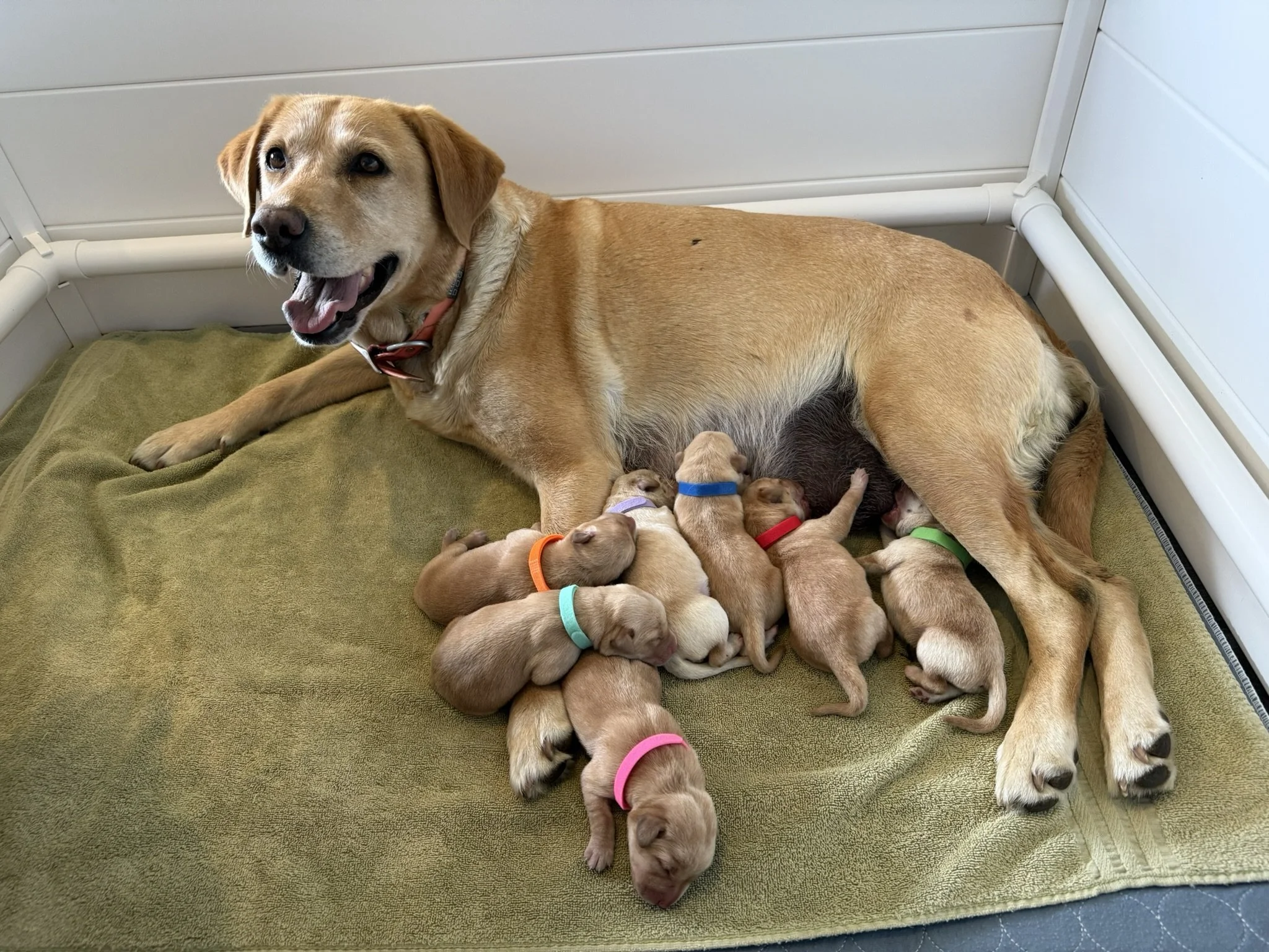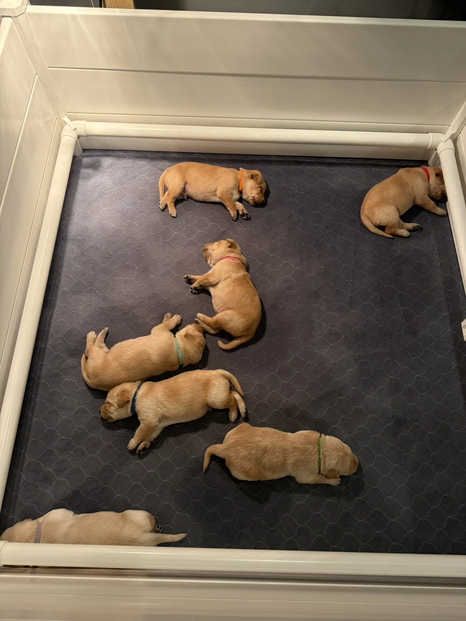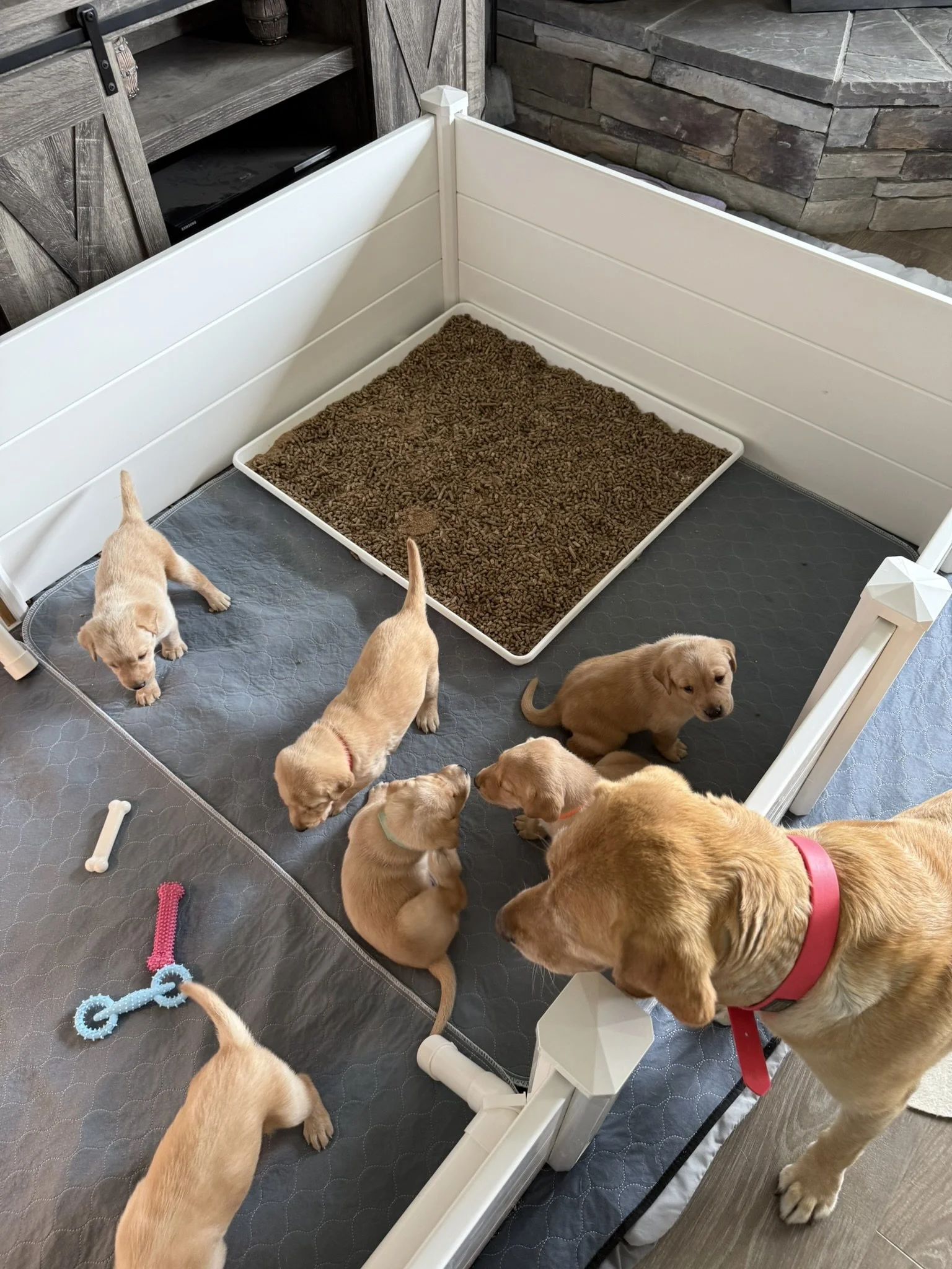 Eva’s third and final litter could not have been more perfect! This mating was a repeat with Lugar of Wind River Labs. All 7 pups were spoken for before they were even born and went to the most absolutely perfect forever homes!