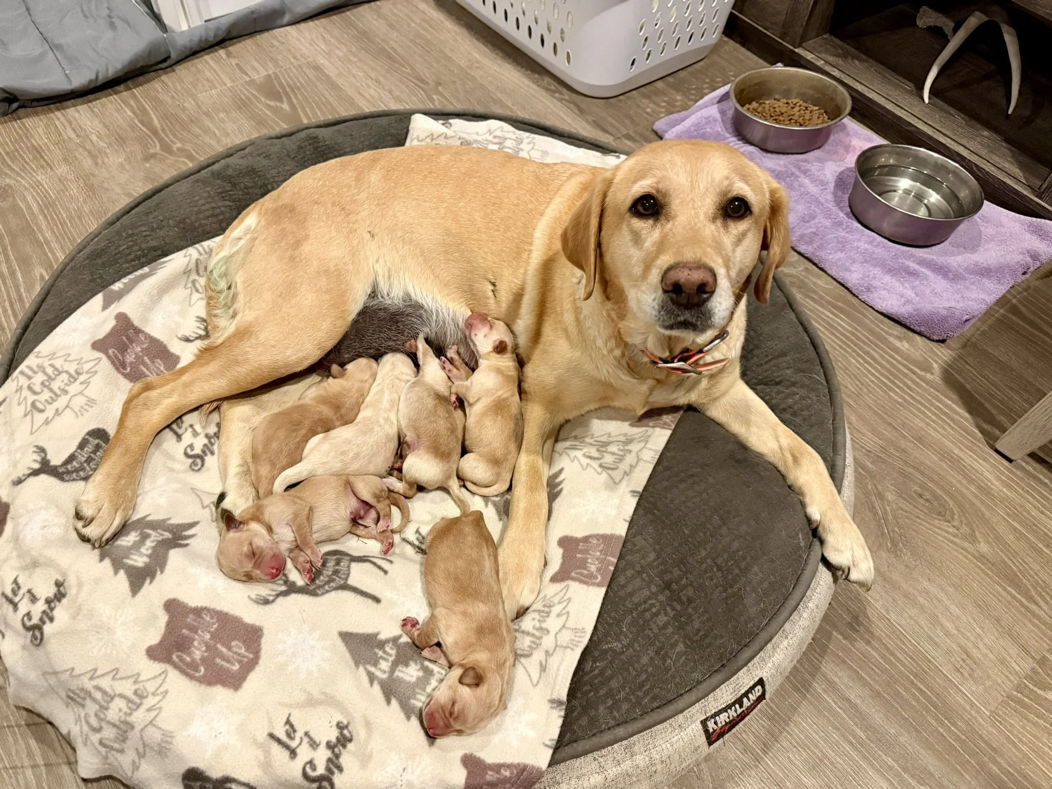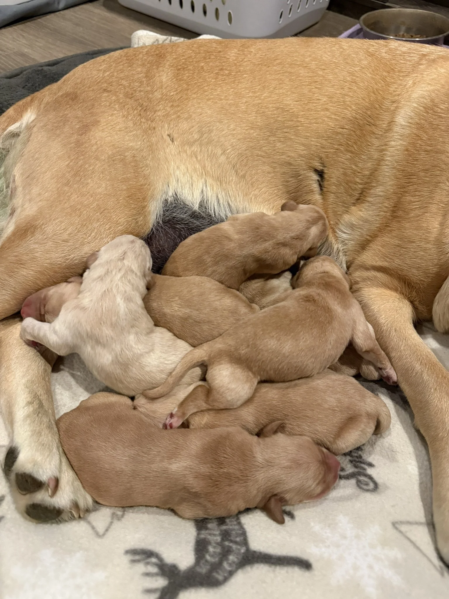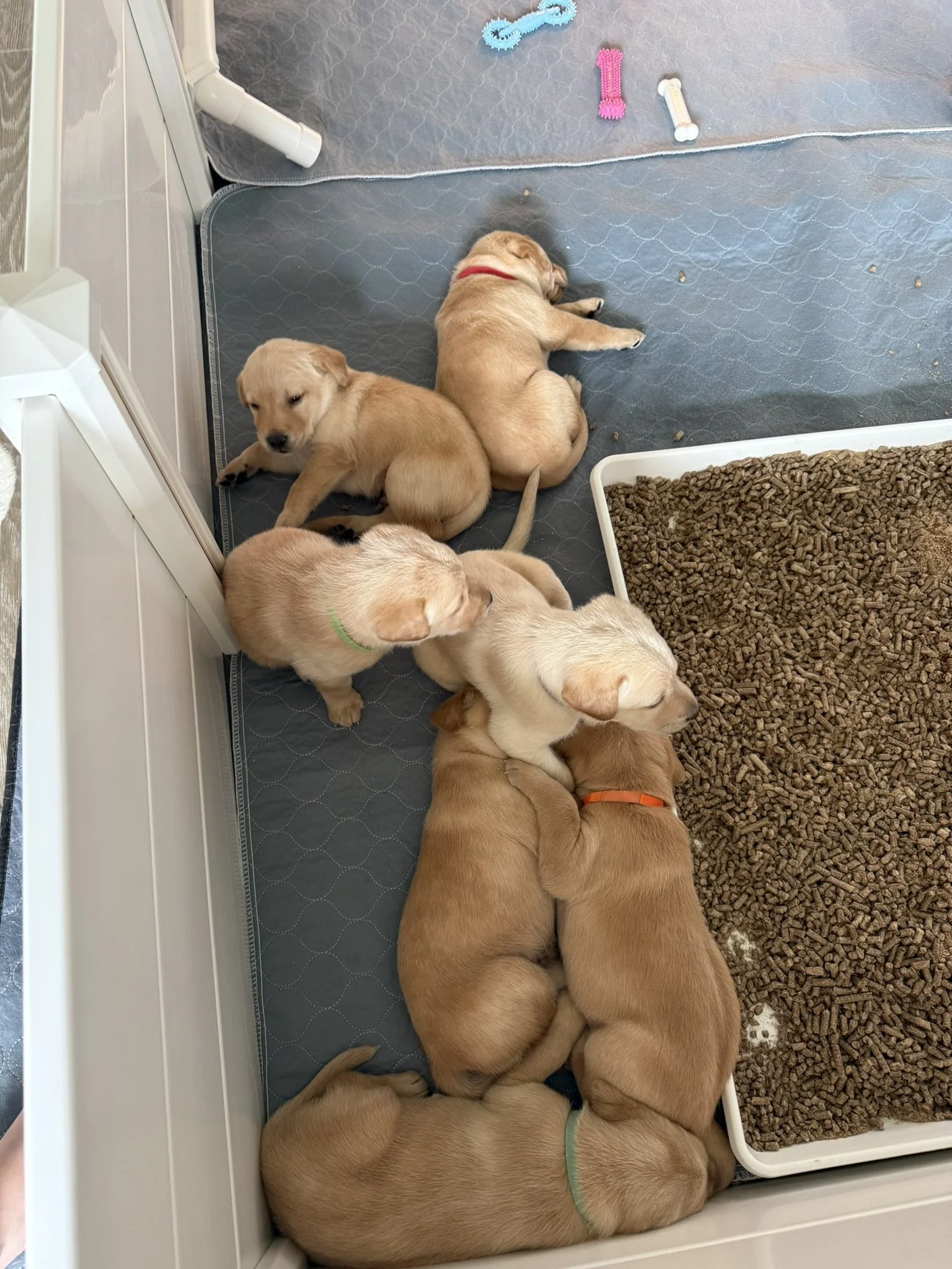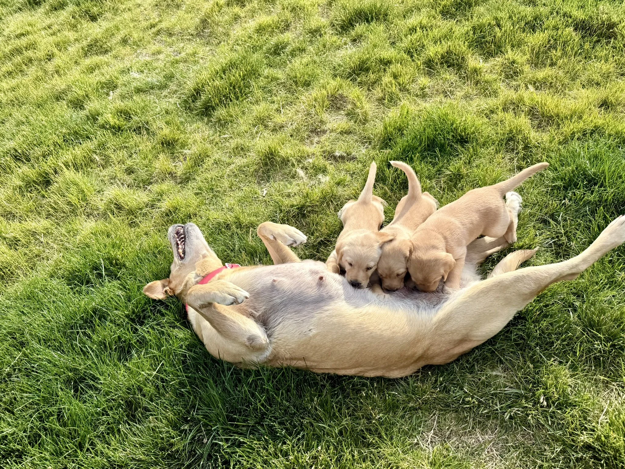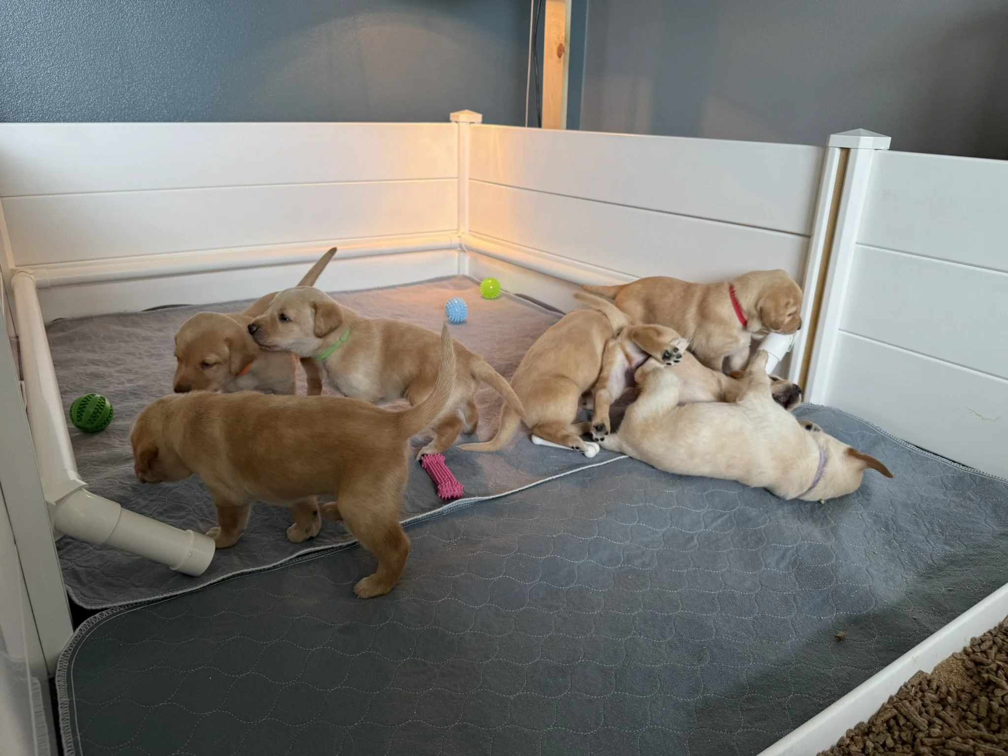 Eva’s third and final litter could not have been more perfect! This mating was a repeat with Lugar of Wind River Labs. All 7 pups were spoken for before they were even born and went to the most absolutely perfect forever homes!