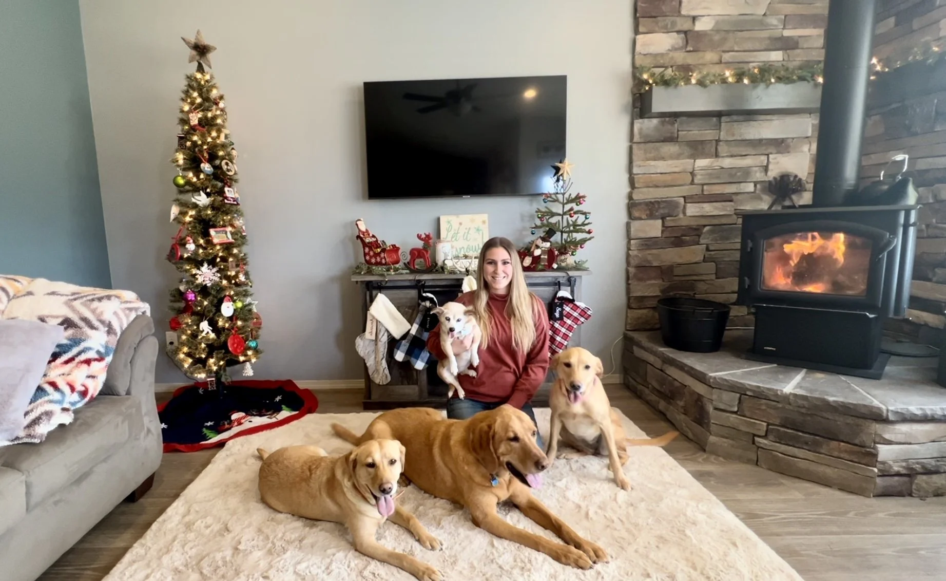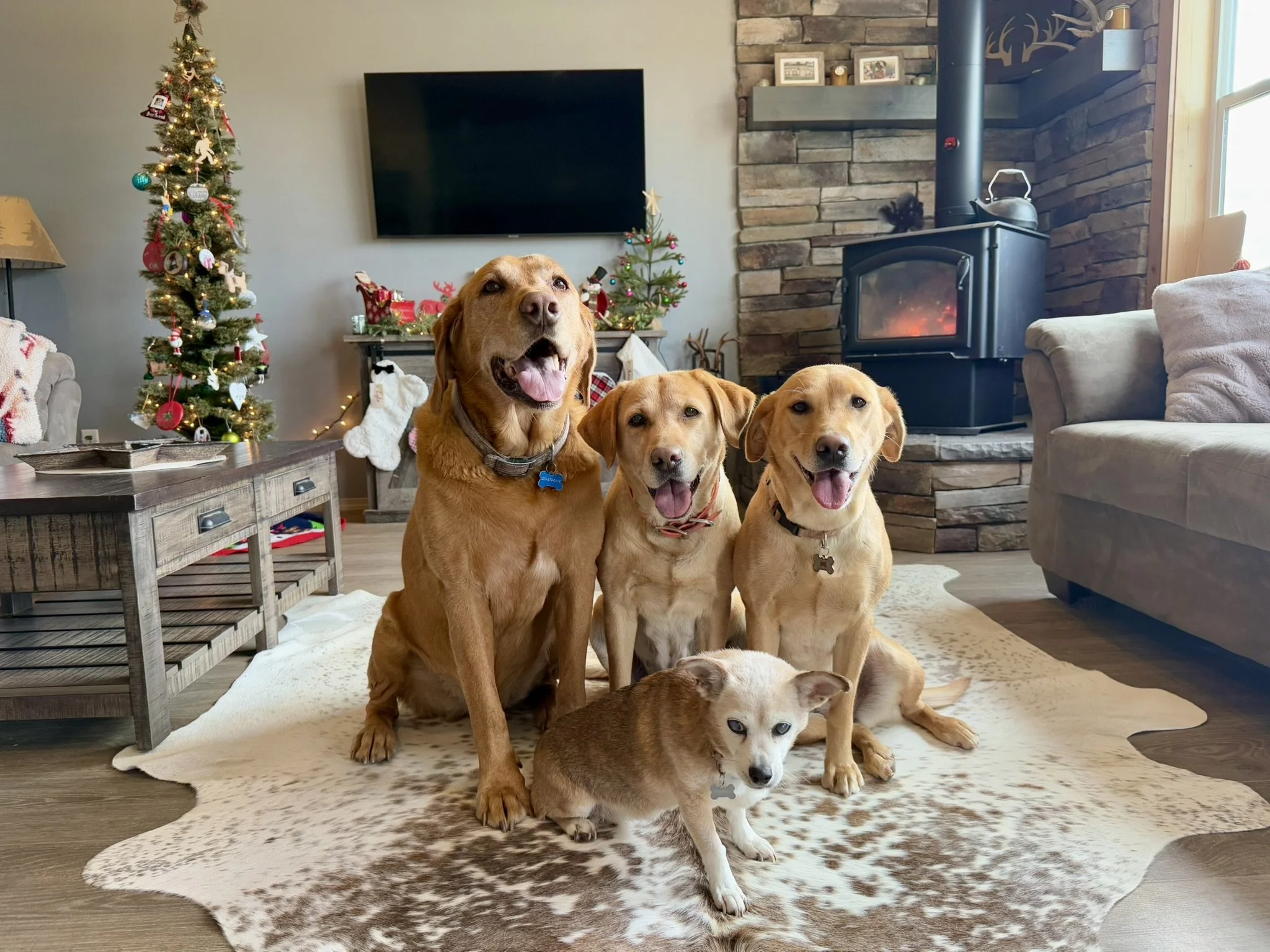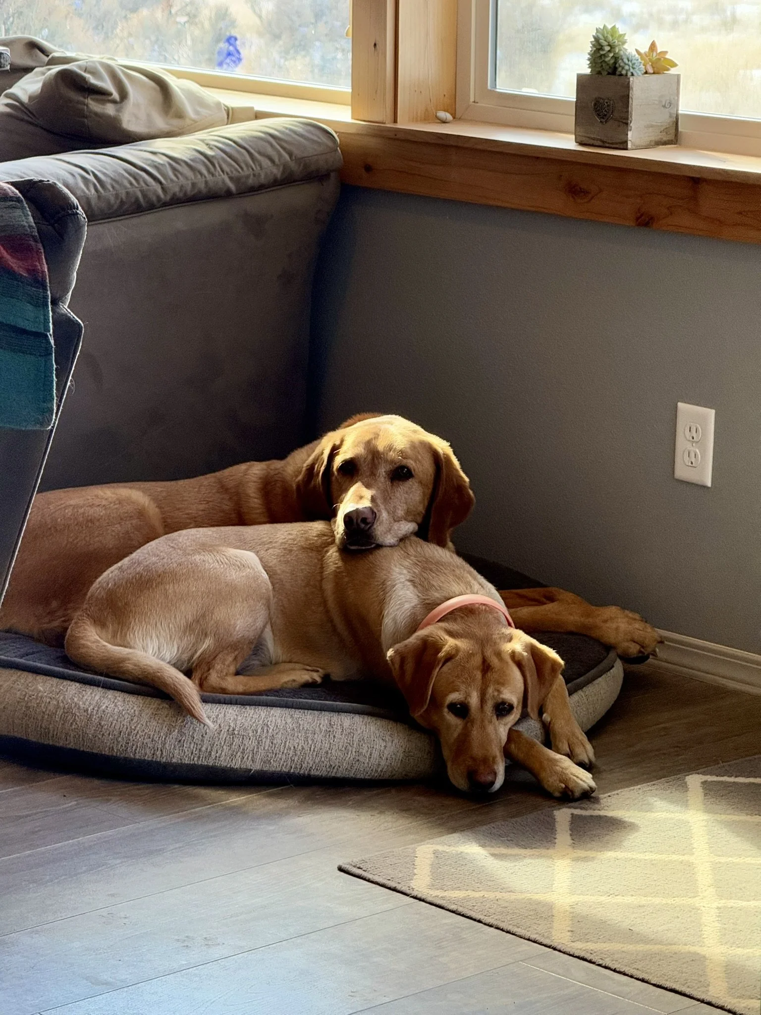 Moose is a 100 lb goof. He’s full of love and has the biggest heart. He enjoys chasing butterflies and being the protector for his three girls. He has a sixth sense when you’re having a bad day and will sit there for hours with his head in your lap when you need it. He shares my pillow with me almost every night like he’s human. We share an even more special bond because we share the same birthday! He was the pick of the litter from the Red Lab litter of 12 I had back in 2016. The way he looks at you with those big droopy brown eyes, just melts everyone’s heart he meets. He’s patient and kind with all little kids. Poor guy is the only man in the household, but he sure loves his girls unconditionally and I’m sure he wouldn’t want it any other way.